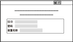 如果相机已准备好连接,相机上会显示信息画面。 在智能手机或平板电脑上选择并输入显示的信息,然后将智能手机或平板电脑连接到相机。 [对于Android] [对于iPhone/iPad]